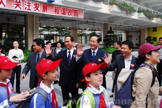 市政協主席、市慈善會會長李德成、市政協秘書長、市慈善會副會長姚欣耀,市民政局局長、市慈善會常務副會長劉潤華等領導為參加慈善行的小學們送行(陳錦輝攝)