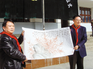 ?。保苍拢玻等?,浦發銀行深圳分行宗樂新行長(后排右四)一行赴貴州黃平參加“希望小學”落成典禮。