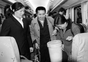 1月10日上午10時(shí)45分,滿載川音的K586次列車從深圳西站出發(fā)。車廂里擠滿了人,想往前走一步似乎都無從下腳,但是返鄉(xiāng)的勞務(wù)工們個(gè)個(gè)都顯得興高采烈。他們用鄉(xiāng)音互相問候,說著各自有趣的打工經(jīng)歷。