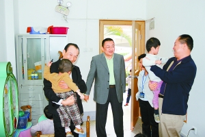 寶安區(qū)慈善會會長何植洪(左一)、常務副會長張文樞(右一)等到寶安社會福利中心看望孩子們。 通訊員 李光裕 攝