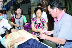 4年前,龍嫦娥遇車禍高位截癱,丈夫姜發(fā)群不離不棄,悉心護理她的飲食起居,近日,一萬元手術(shù)費難倒了收入微薄的姜發(fā)群(見本報近日報道)。昨日上午9時許,記者來到龍嫦娥家中,龍嫦娥坐在輪椅上等候救護車的到來,一根皮帶將她的身體固定在輪椅上以防止摔倒。記者將好心人林女士捐出的一萬元交到姜發(fā)群手上,他一再追問好心人的姓名。