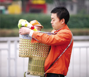 昨日,在大益廣場,來自貴州遵義的羅爸爸抱著剛滿5個月的女兒,站在馬路邊等待孩子的媽媽。這天是婦女節,羅爸爸主動承擔起照顧孩子的任務,讓平時忙忙碌碌的妻子好好休息一下。