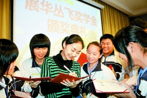 邢丹為展華實驗學校的學生頒發叢飛獎學金。
