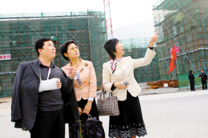 新世界集團(tuán)董事長(zhǎng)黃偉等正在了解學(xué)校建設(shè)進(jìn)展情況。
