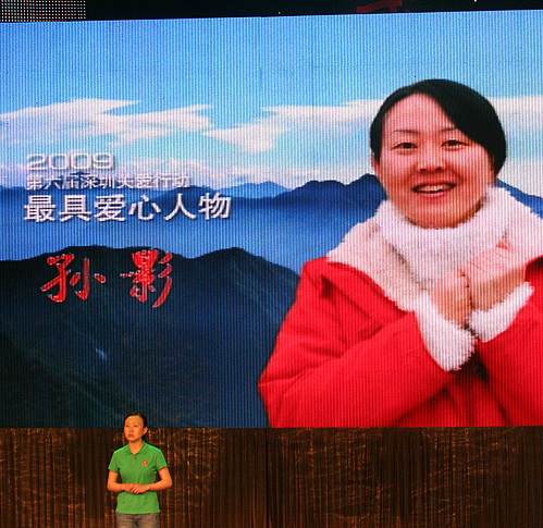 孫影,女,29歲。今年2月,她第6次背著行囊,孤身一人走進貴州大山深處。從2006年9月連續參加深圳“募師支教”行動以來,她幾進貴州貧困山區,奉獻愛心,無怨無悔。為赴山區支教,孫影放棄了在深圳一家高科技公司的工作。她在大山深處默默堅守,將愛心和知識傳遞給山里的孩子們。在遵義正安縣新洲鎮中心小學,她擔任了學校副校長,半年里徒步數百公里,走遍了全鎮10多個村,家訪了許多貧困學生家庭;她多方奔走,在愛心企業家資助下,幫助鞍山小學建成了新教學樓,180多名小學生告別了40多年的危房校舍,搬進了寬敞明亮的新教室。支教近3年來,她為了孩子們幾乎花光了積蓄。孫影還開展貧困生和鄉村小學的實地調查,先后籌得40多萬元捐款,幫助貴州大方縣建設了兩所希望小學,并為當地10多名貧困大、中學生聯系到了資助人。