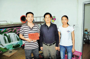 平南縣公安民警來深看望小文夫妻并送上慰問金(中為專程來深看望小文的李理)。