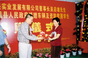 深圳啟盛集團是一家集建筑、施工為一體的大型工程公司,22年來,啟盛集團向社會各界捐款1000多萬元,主要用來支持福利、教育事業。董事局主席吳啟雄被深圳市光彩事業促進會授予“光彩事業特殊貢獻獎”;在深圳市政府表彰會上,他被授予“民族團結進步模范個人”最高獎,是獲此殊榮的唯一民營企業家。吳啟雄還被團中央、中央民委授予全國“民族團結進步模范個人”。1999年,吳啟雄捐款120萬元,用于家鄉修建醫院、修復文物古跡等,捐款460萬元在家鄉興建學校。2000年,吳啟雄資助湖南省鳳凰縣24名貧困學生,完成從小學到大學的學業。此外,啟盛集團還向重慶大學捐款50萬設立獎學金,資助學業優異、家境貧寒的大學生。