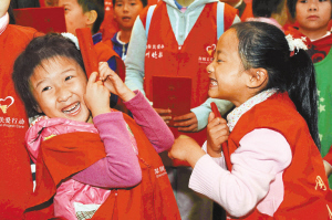 愛心接力兒童團的孩子們接到愛心證書后十分高興。