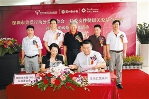 ????昨日,由深圳市關愛辦、深圳市關愛行動公益基金會和深圳特區報社聯合主辦,深圳仁愛醫院承辦的深圳市關愛行動公益基金會·仁愛女性健康關愛基金簽約暨宮頸疾病免費篩查活動啟動儀式在深圳仁愛醫院舉行。市關愛行動公益基金會理事長李統書,市關愛行動公益基金會常務副主席、市關愛辦主任、深圳報業集團黨組書記、社長黃揚略出席儀式并講話。深圳仁愛醫院院長楊志學和深圳市關愛行動公益基金會秘書長伍少華分別在協議上簽字。