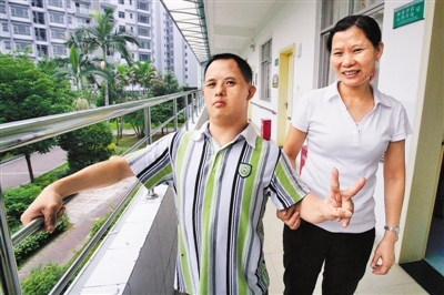 曾姐十多年如一日照顧弟弟。圖為她近日領著弟弟到沙井殘聯活動中心參加活動。深圳商報記者 陳錫明 攝