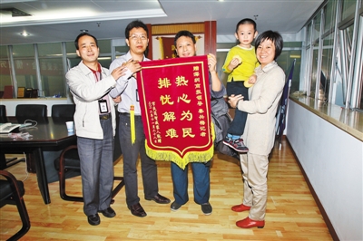 昨日下午,爸爸簡水生帶著小威威一起來到深圳商報社,給報社和記者秦興梅送上“熱心為民、排憂解難”的錦旗以示感謝,并再三囑咐記者,一定要替他們一家向所有愛心人士轉(zhuǎn)達感激之情。