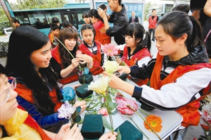昨日,龍崗中專的學生來到龍崗世貿(mào)U站,與義工和市民一起制作簡易插花、DIY賀卡,豐富U站志愿服務(wù)形式,拓展U站服務(wù)領(lǐng)域,并為在U站服務(wù)的義工贈送插花和新春賀卡,學習義工們的奉獻精神。