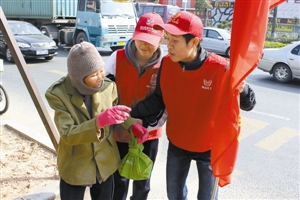 坪山高級中學的義工們給有需要的人提供幫助。