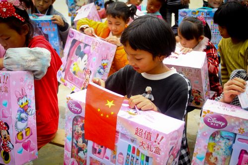 第一個(gè)拿到大禮包的小朋友令其他小朋友羨慕不已