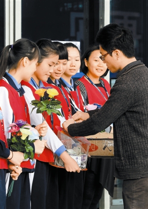 日前,深圳市第三職業(yè)技術(shù)學(xué)校學(xué)生在深圳會展中心現(xiàn)場義賣義工制作的玫瑰花,為深圳市志愿服務(wù)基金會募集善款,用于資助貧困山區(qū)孩子等服務(wù)項目。