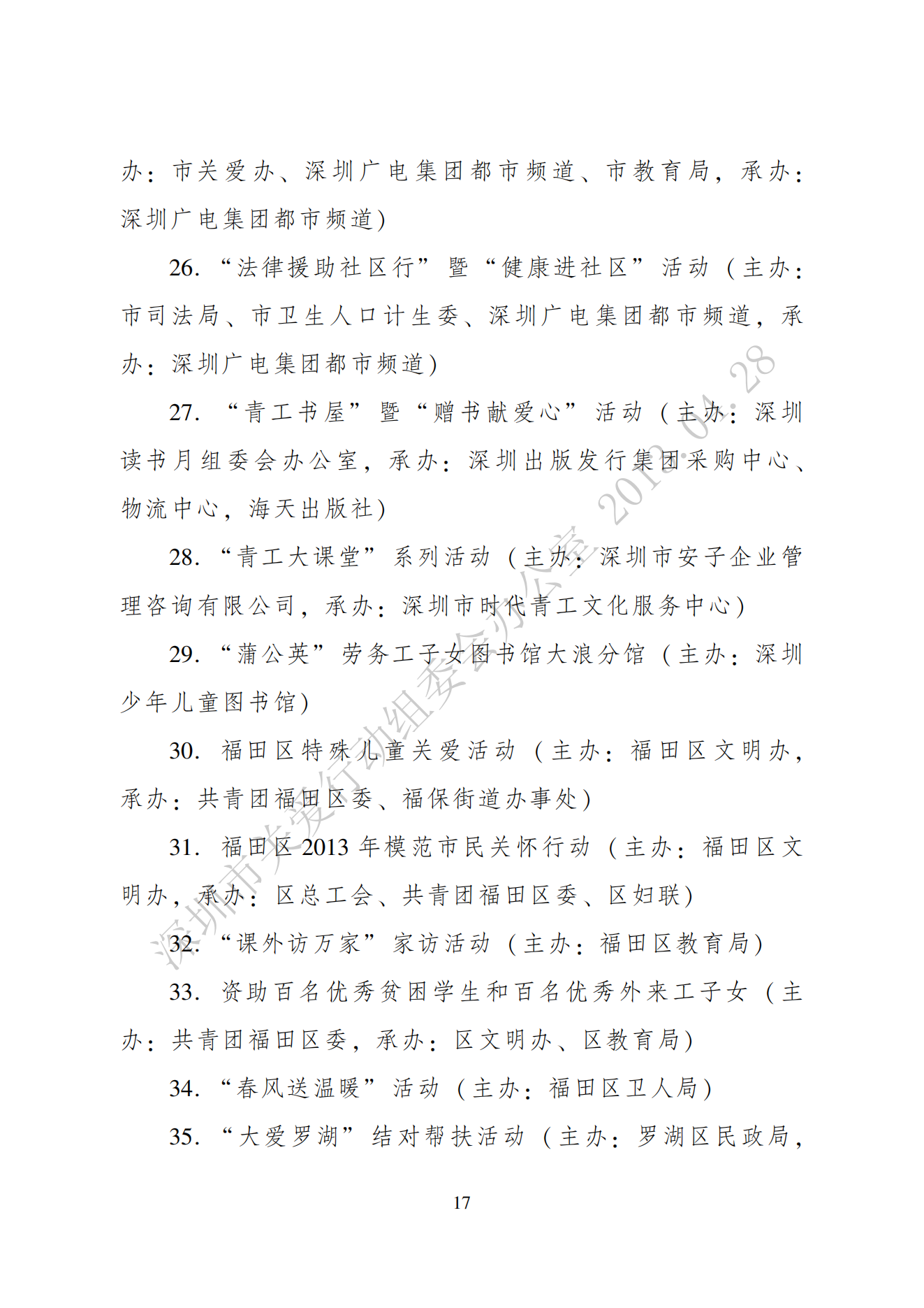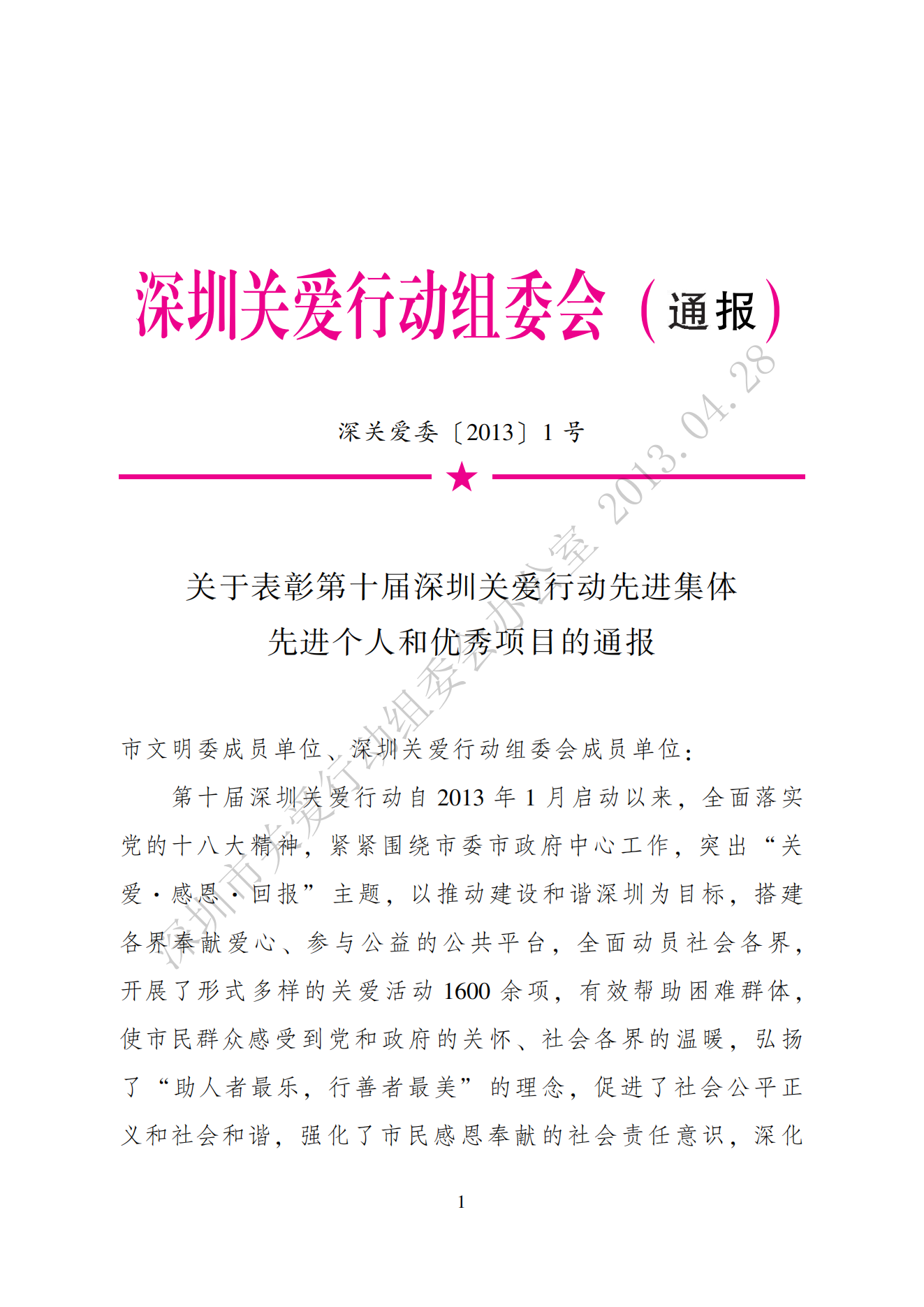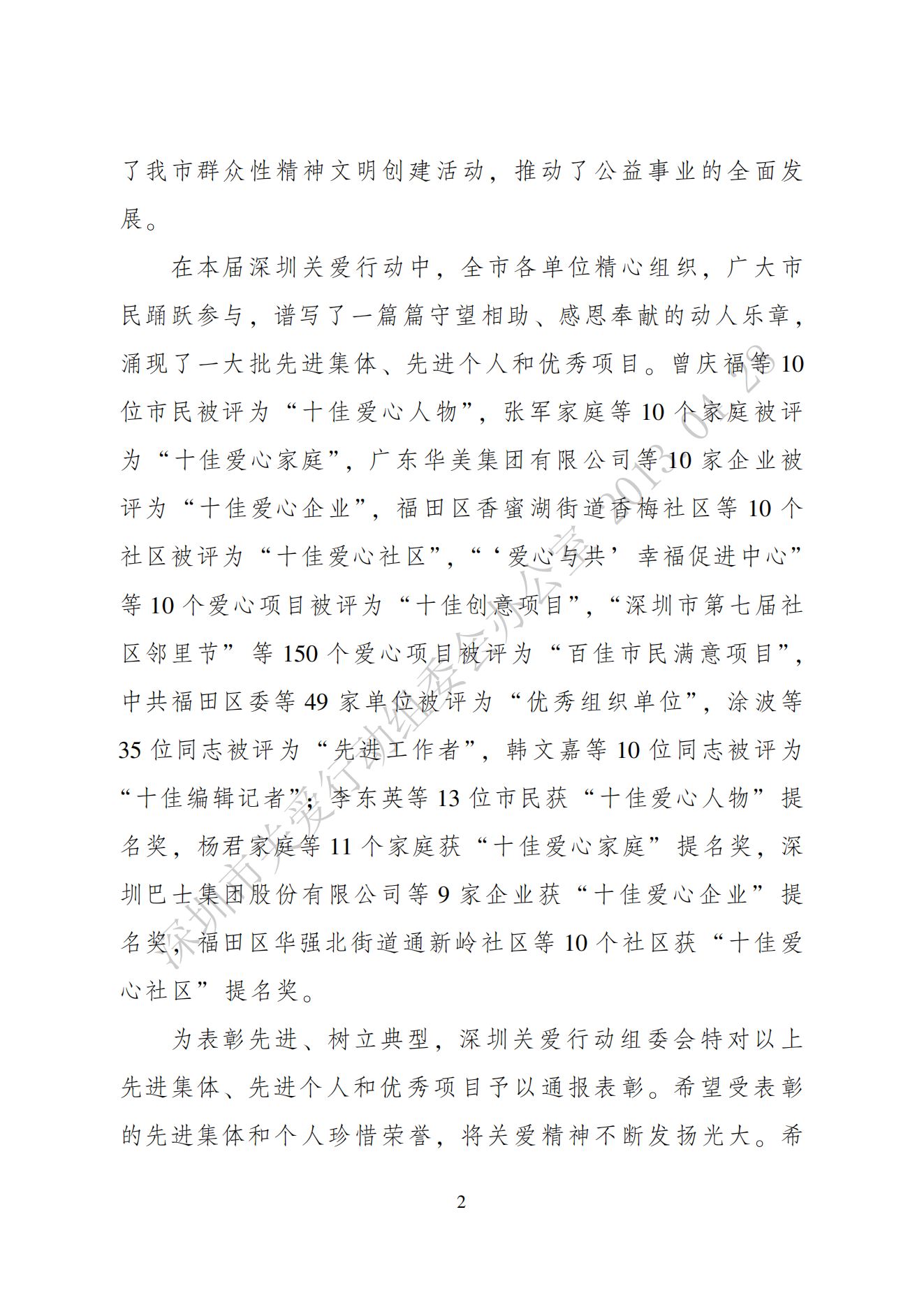 關于表彰第十屆深圳關愛行動先進集體、先進個人和優秀項目的通報