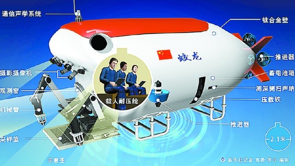 2012年6月,“蛟龍”號載人潛水器在太平洋馬里亞納海溝創(chuàng)造了7062米世界作業(yè)型載人潛水器最大的下潛深度記錄,并于今年6月啟動“試驗性應用航次”。目前,中國僅有2名專職深海載人潛水器潛航員,官方計劃用5年時間實現(xiàn)業(yè)務化運行,并培養(yǎng)一支專業(yè)化潛航員隊伍。