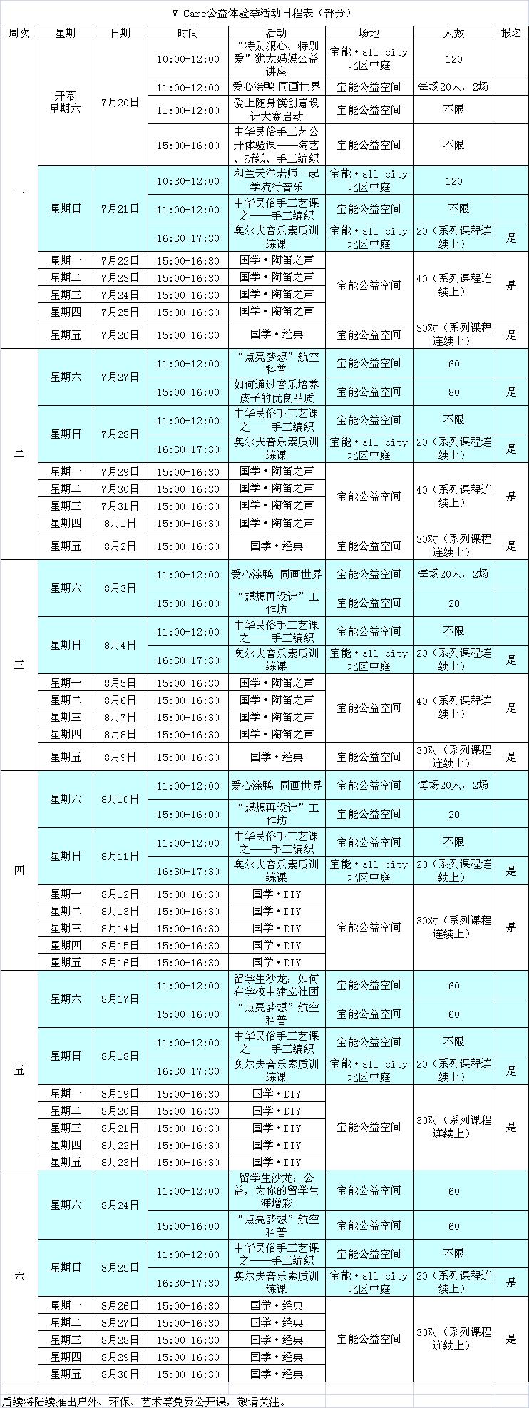 ??? V-care寶能公益空間已于20日上午正式揭幕。V-care暑期公益體驗季系列活動已先后展開。愛心涂鴨、航天科普、手工拼豆、音樂、陶笛、DIY、舊物改造、留學生沙龍、戶外、環保、藝術等近百場活動異常紛呈!期待您的參與!