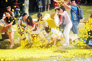 ????【深圳商報訊】(記者 管亞東 通訊員 馮曉)昨天,“歡樂小鴨為愛漂流”2013深圳福田河橡皮鴨漂流公益活動愛心見證儀式在深圳中心公園盛大舉辦,50000只橡皮小鴨向市民發出愛的邀約,近千名市民參加了現場活動。