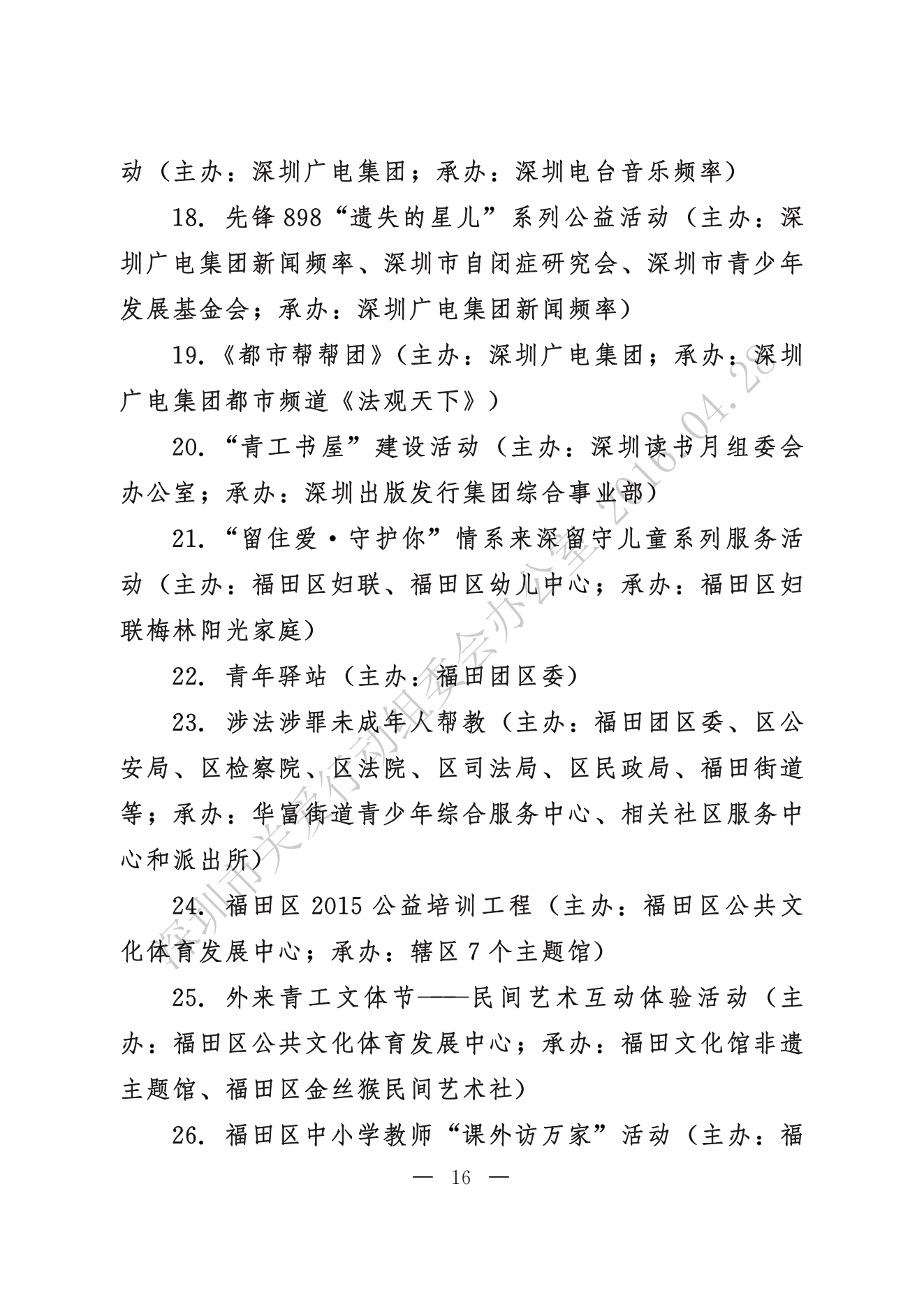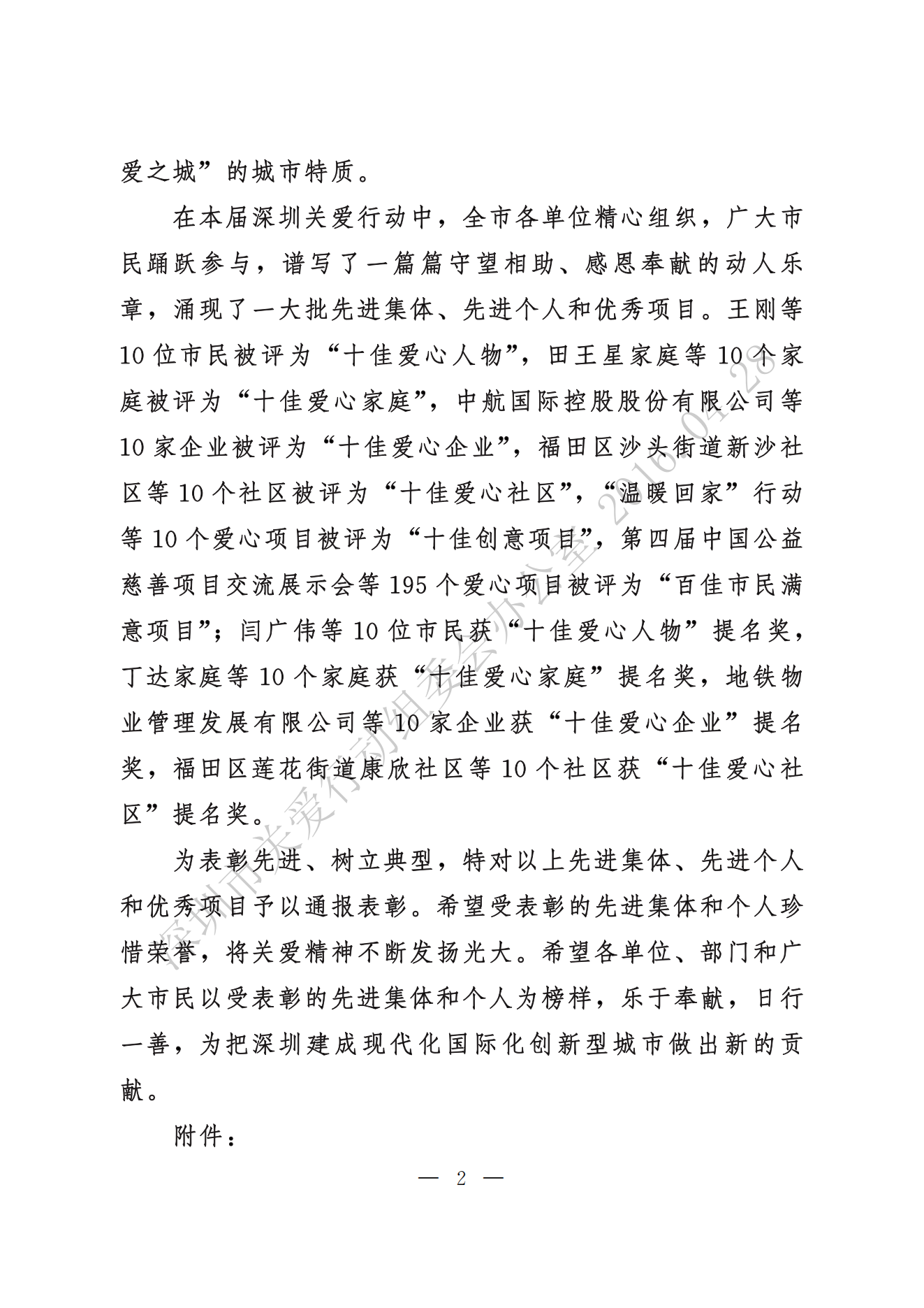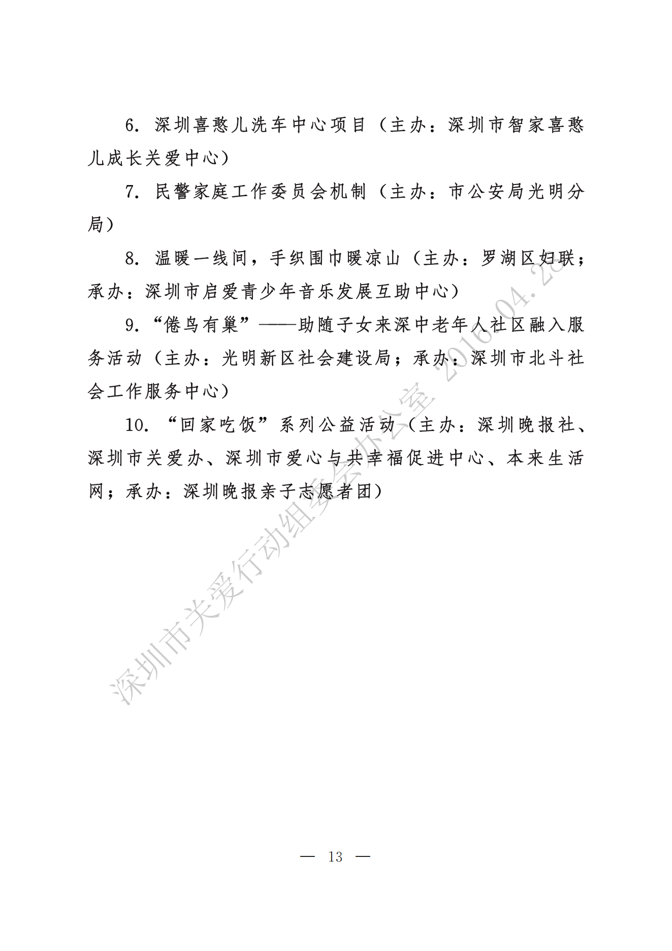 關于表彰第十三屆深圳關愛行動先進集體、先進個人和優秀項目的通報