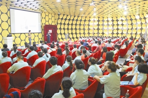 開(kāi)學(xué)現(xiàn)場(chǎng),家長(zhǎng)們認(rèn)真聽(tīng)心理咨詢老師講課。
