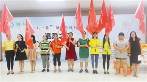 ▲“溫柔之手”愛心小分隊成立儀式上,志愿者代表為愛心活動搖旗助力。