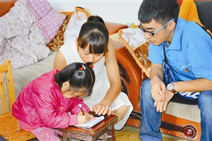 2014年雅安地震后,余浩前往雅安,訪問(wèn)當(dāng)?shù)毓聝海o導(dǎo)孩子學(xué)習(xí)。