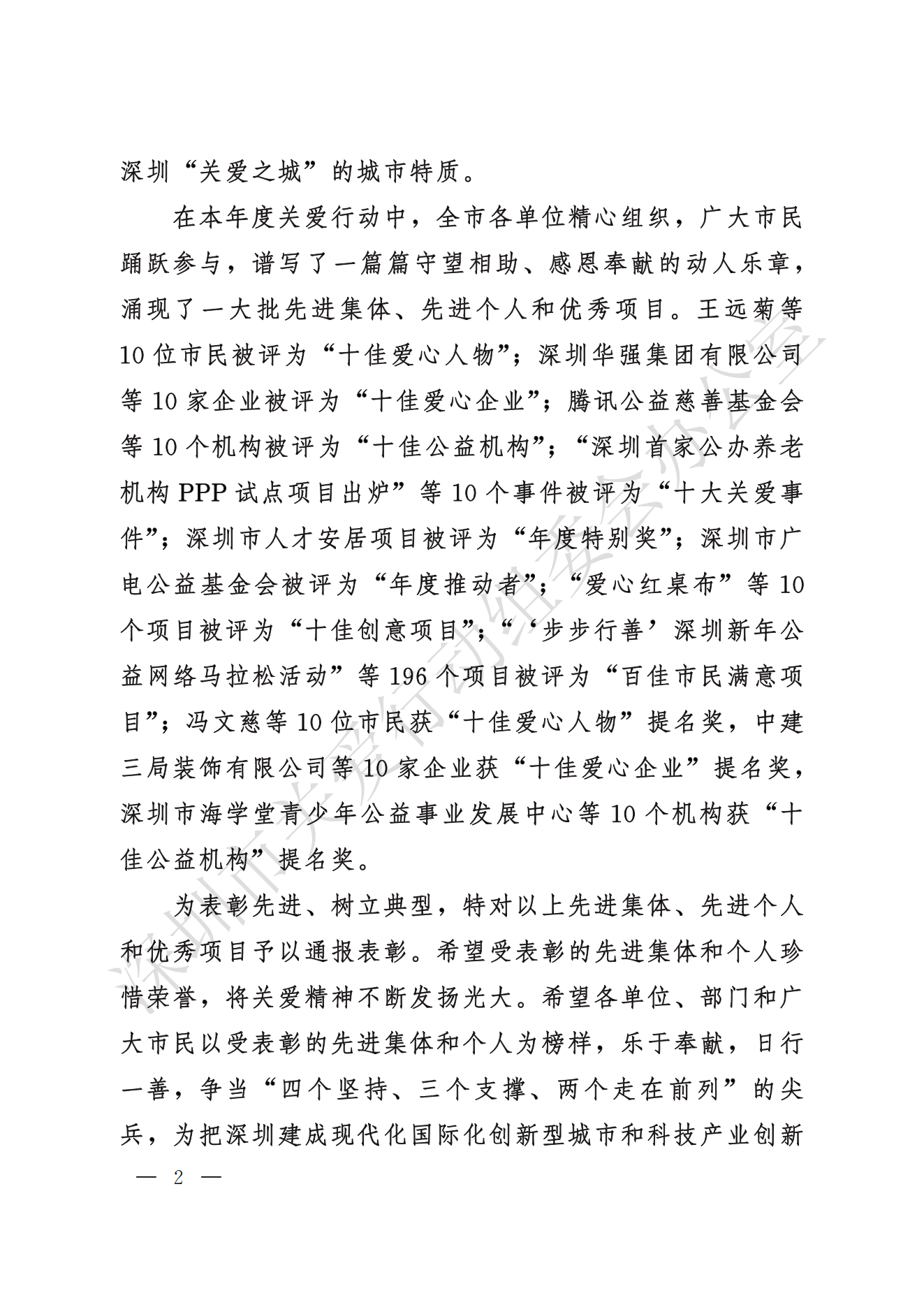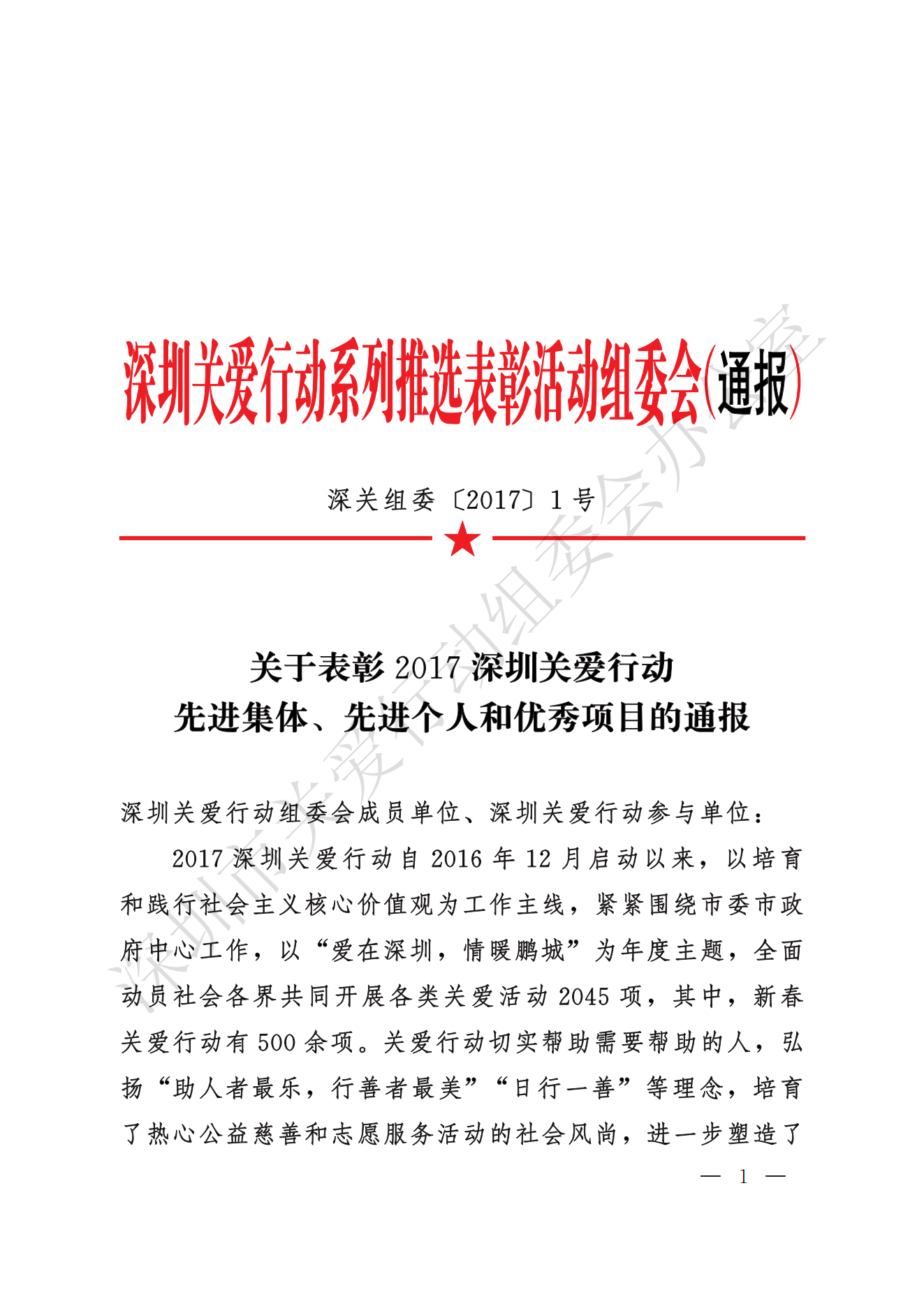 關(guān)于表彰2017深圳關(guān)愛行動先進(jìn)集體、先進(jìn)個人和優(yōu)秀項目的通報