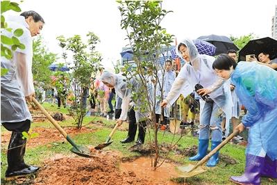 昨天,“關注植物,關注未來”——迎接第19屆國際植物學大會公益植樹活動在生態(tài)優(yōu)美的華僑城濕地舉行。 深圳商報記者 廖萬育 文燦 攝
