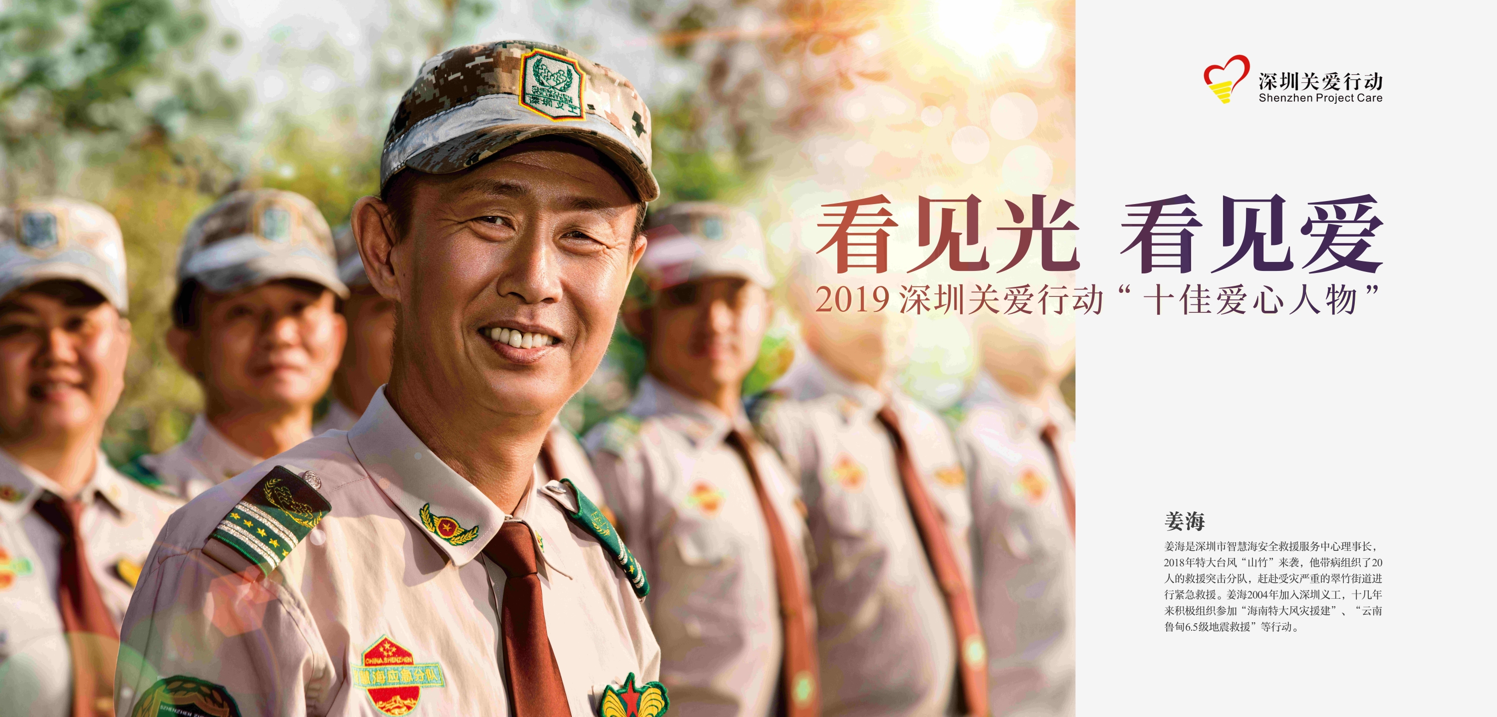 男,深圳市智慧海安全救援服務(wù)中心理事長(zhǎng)。姜海 2004 年加入深圳義工,十幾年來(lái),積極組織并親自帶領(lǐng)隊(duì)員參加“海南特大風(fēng)災(zāi)援建”“云南魯?shù)?.5級(jí)地震救援”“深圳市光明新區(qū)搶險(xiǎn)救援”“廣東汕頭水災(zāi)救援”“特大臺(tái)風(fēng)山竹救援”等行動(dòng)。2018年特大臺(tái)風(fēng)“山竹”來(lái)襲,在接到深圳市三防辦救援通報(bào)后,住院中的姜海帶病組織了 20 人的救援突擊分隊(duì),來(lái)到深圳受災(zāi)嚴(yán)重的翠竹街道進(jìn)行緊急救援。平時(shí),他帶領(lǐng)隊(duì)員進(jìn)入社區(qū)、學(xué)校及企事業(yè)單位進(jìn)行安全普及工作,提升人民群眾安全意識(shí)。他還組建了市義工聯(lián)消防安全組,從組建之初的 300 人發(fā)展到 3000 多人,參加服務(wù)人次 1 萬(wàn)余次,服務(wù)時(shí)間 20 多萬(wàn)小時(shí)。