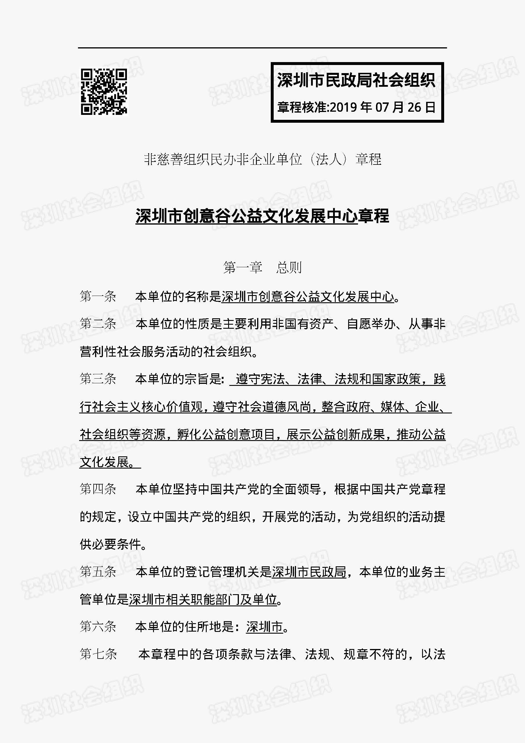 深圳市創(chuàng)意谷公益文化發(fā)展中心章程