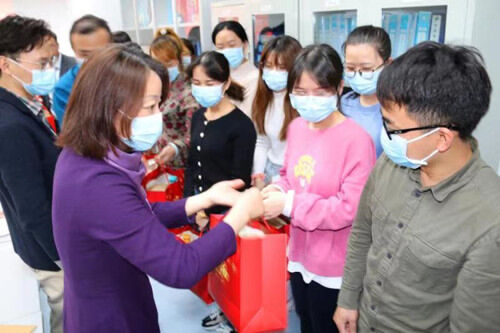 當日下午,為了給日夜奮戰一線的醫務人員送去關愛和溫暖,倡導社會大眾關注和關愛醫務人員,以及營造尊醫愛醫的良好氛圍,深圳市關愛辦攜手安利基金會為深圳市兒童醫院檢驗科的醫務人員開展一場以“關愛白衣天使,溫暖迎新春”為主題的關愛活動,深圳市關愛辦專職副主任李青松、安利公共事務部經理郭勇為兒童醫院檢驗科的一線醫務人員送上100份溫暖禮包和新春祝福,這份特殊的溫暖禮物包含了由安利基金會的員工志愿者精心準備的剪紙貼花臺燈和安利愛心禮包。