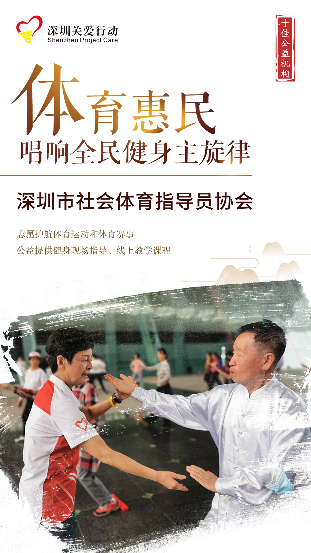 社會體育指導員協會成立于2012年,至今擁有5個直屬隊、34個支隊、10個義工小組,體育義工22103名。截止2020年底,義務服務項目9627個,總服務55萬小時。2020年為“廣東省大學生定向運動錦標賽”“首屆極限運動嘉年華”“深圳平安金融中心垂馬”等高規格賽事提供體育類專項志愿服務,并拓展了街舞和脊柱側彎篩查項目,在脊柱側彎篩查項目中,短短三個月累計服務9個區632所中小學。為響應全民健身運動,從2020年5月起組織義工定期在中心公園提供室外健身器材現場指導、指引器材維護。同時為便于市民疫情期間開展體育運動,提高免疫力,制作了教學視頻廣場舞36個、太極拳16個、健身氣功10個,共62個線上教學課程。
