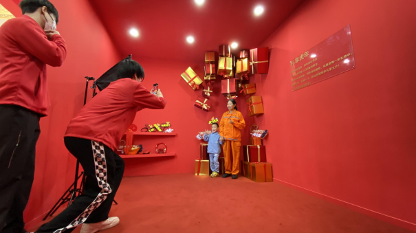 “腰再挺直一些”“對聯(lián)再拿高一點兒”“對,這是送您的相框”……1月21日,在深圳福田卓悅匯廣場一樓的華為“新年照相館”,不斷傳出快門的“咔嚓”聲和一陣陣笑聲,身著工作服的環(huán)衛(wèi)工人和一線防疫人員在印有漢字造型的紅色盒子布景前,開心地拍下一張張新年照。