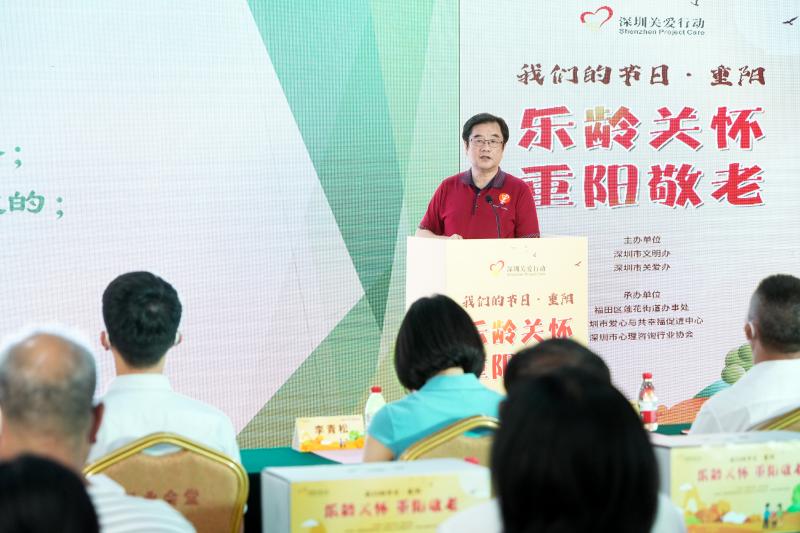本次啟動儀式由市文明辦、市關(guān)愛辦主辦,福田區(qū)蓮花街道辦事處、愛心與共幸福促進中心、深圳市心理咨詢行業(yè)協(xié)會承辦。市關(guān)愛辦專職副主任李青松表示,“目前,深圳正以先行示范區(qū)的擔當謀劃老齡工作,構(gòu)建老年友好型社會,滿足老年人多層次、多樣化需求,營造孝親敬老社會環(huán)境。市關(guān)愛辦近年來陸續(xù)打造了多種敬老愛老項目,深受老年群體的喜愛。舉辦重陽敬老關(guān)愛活動,是希望讓老年人感受到城市溫情的同時,帶動全社會更多的力量尊重和關(guān)愛老年人。”