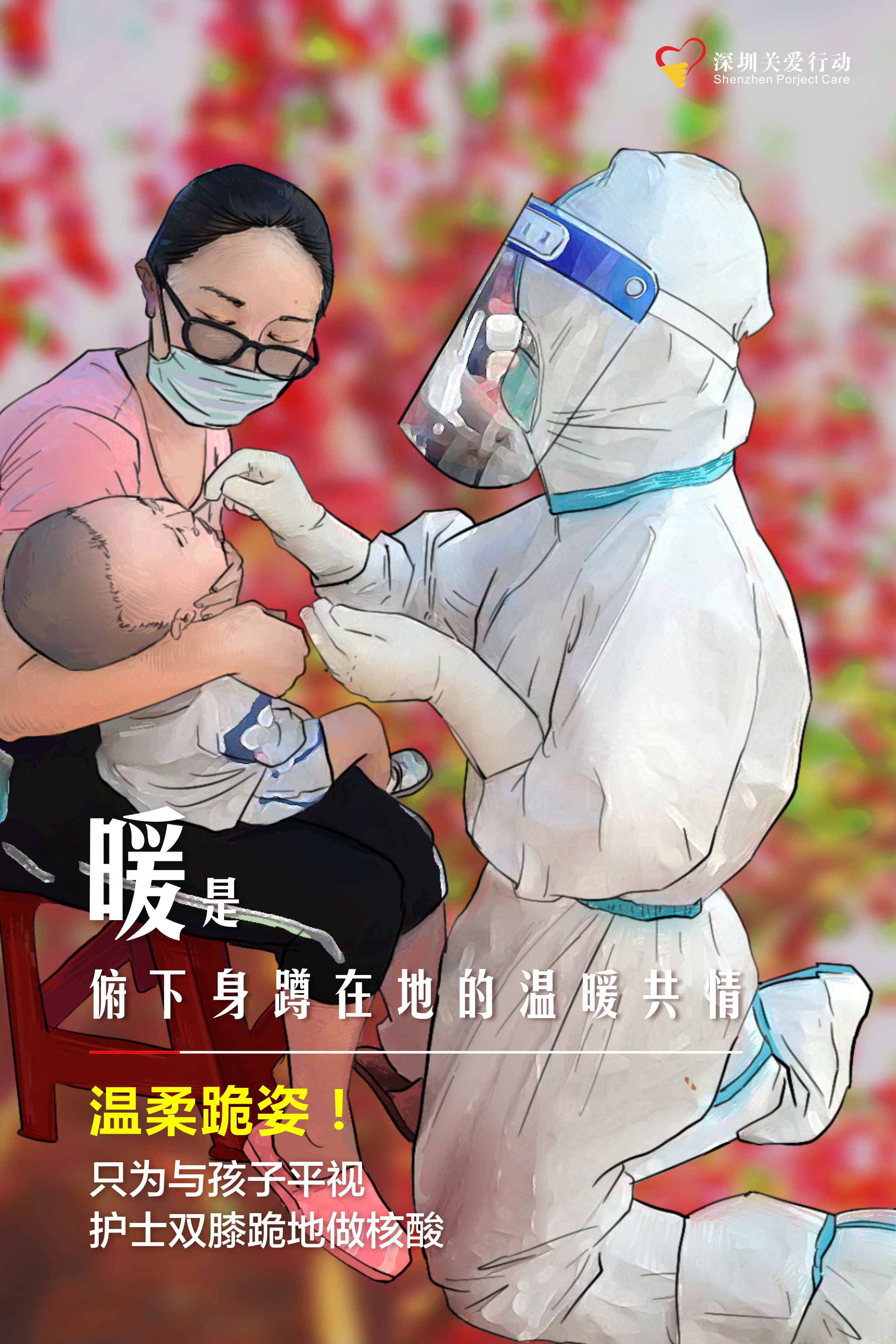 6月7日下午3點半左右,寶安區沙井街道沙二社區,深圳中西醫結合醫院的楊海萍作為晚班核酸檢測人員早早趕到現場,著手準備好各項工作后,緊張投入為社區居民進行核酸檢測的工作中。楊海萍雙膝跪地為大人懷中的嬰兒進行核酸檢測的照片在網上刷屏。楊海萍坦言,“可能是因為看到我們穿成這樣,輪到孩子們時,小孩一見到我就緊張,部分還會嚎啕大哭,為了減少他們的恐懼和痛苦,我就選擇了這樣的姿勢,只是覺得這樣可以平視孩子的眼睛,更溫柔地跟他們對話?!睏詈F颊f道。