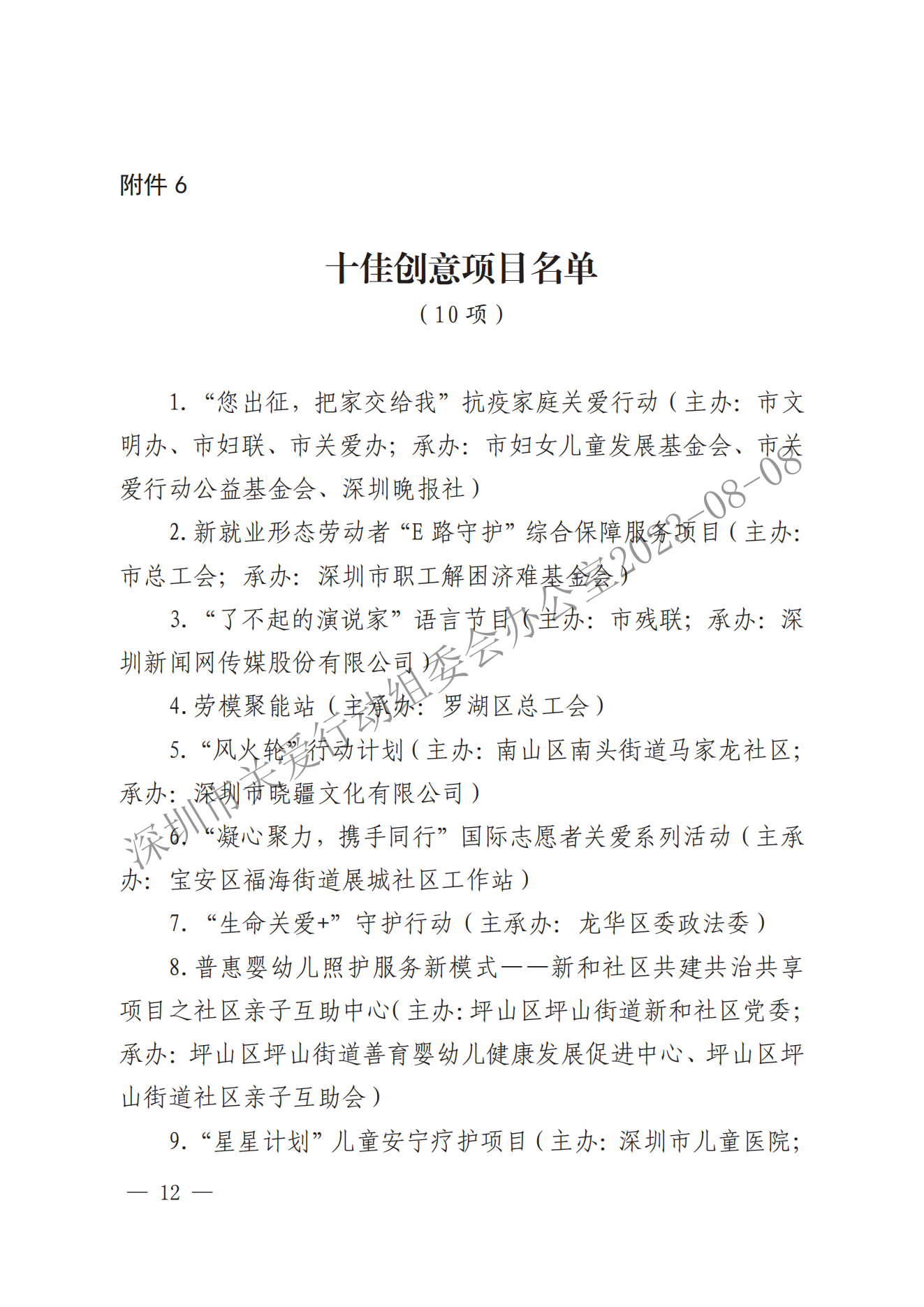 關于表彰第二十屆深圳關愛行動先進個人、先進集體和優秀項目的通報