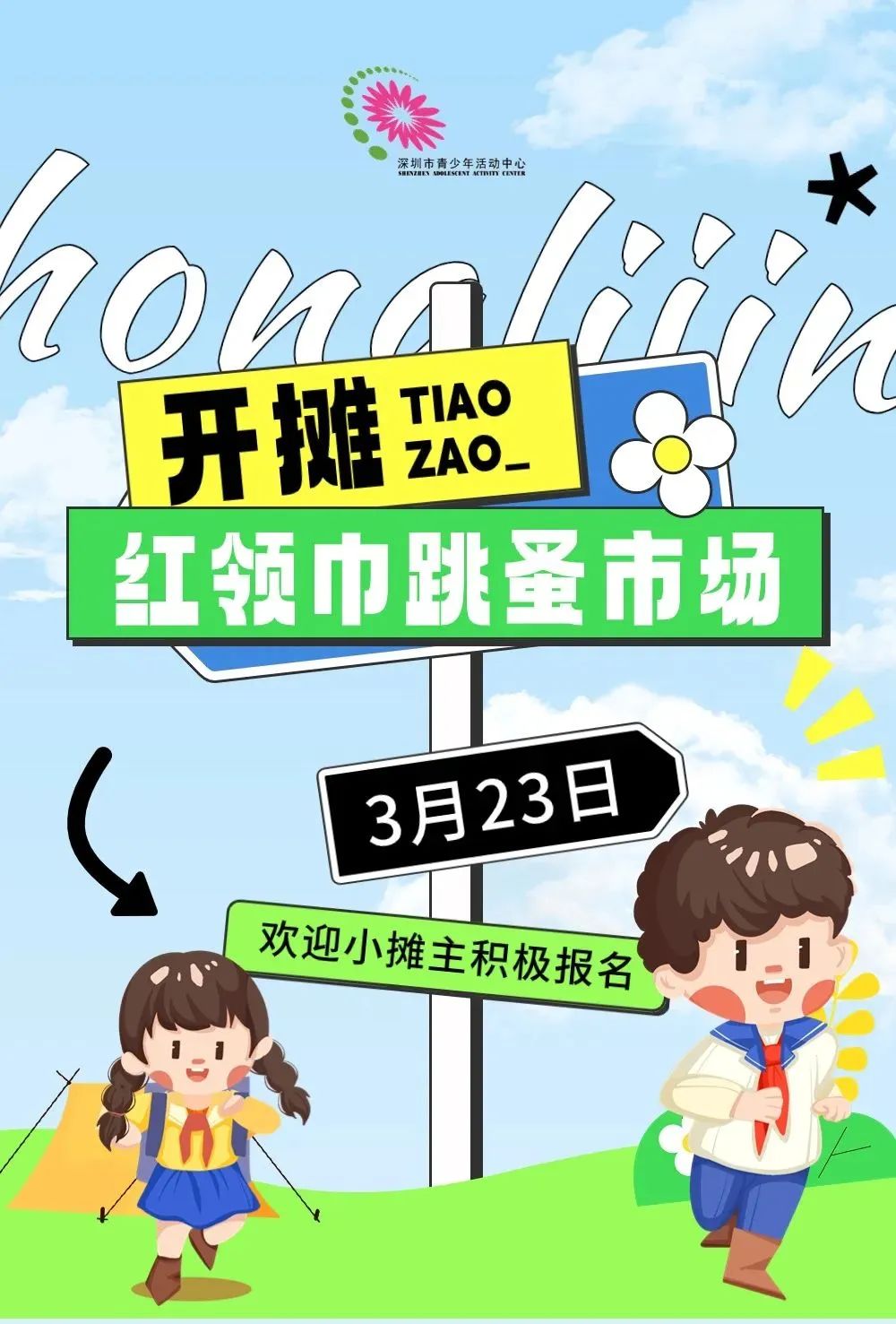 活動簡介:共青團福田區委員會助力“百千萬工程”系列活動之“青春圳少年  攜手益同行”青少年志愿公益活動攜手青少年公益市集再度回歸。青少年公益市集招募小小攤主、愛心家庭,點亮愛心,綻放希望!快來報名擺攤吧~