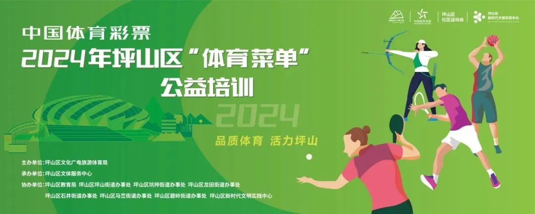 活動簡介:2024年是坪山區面向市民開展體育公益培訓的第四個年頭,坪山區體育公益培訓自開辦以來,一直為廣大市民提供高質量的體育培訓服務。今年,將繼續擴大培訓規模,豐富培訓內容,讓更多人感受到運動的快樂,促進全民健身事業的發展。此次公益培訓將從6月開啟,共有20項體育類項目,不僅有傳統項目:籃球、網球、乒乓球、羽毛球、足球、游泳、太極拳、健身氣功等,也有平常少接觸的特色項目:花樣跳繩、拳擊、武術、輪滑、空手道、跆拳道、滑板、匹克球、少兒體適能、體能健身訓練等。