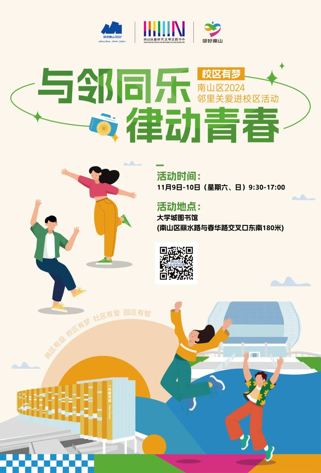 活動簡介:一個機(jī)會,與校區(qū)鄰里相熟悉,一次歡聚,與青年同行共歡樂。鄰好南山,如約而至。以鄰里集、鄰里FUN、鄰里TALK、鄰里匯四大板塊設(shè)置青年共創(chuàng)市集、主題沙龍、社團(tuán)才藝展演、校區(qū)鄰里資源服務(wù)等系列活動,邀好玩、有趣、青年才俊的你與我們共塑校區(qū)鄰里節(jié)。