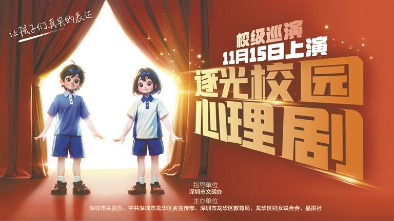 活動簡介:11月15日,“深圳關(guān)愛行動·逐光校園心理劇”校級巡演將在深圳市藝術(shù)高中啟幕。參賽選手們正在為校級巡演緊張排練。屆時,將邀請師生、家長、編劇、戲劇家、心理教育專家等各界嘉賓觀看演出。校級展演結(jié)束后,將選出4至6部精品劇目參與最終的區(qū)級展演,并參演心理劇微電影。